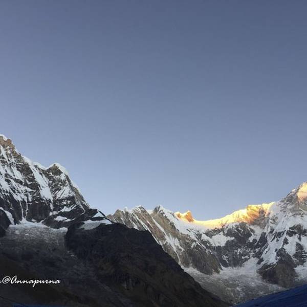 著名的鱼尾峰也包括在其中,与其他山峰排在一起,形成一排山峰的景象,每日太阳初升时,阳光把雪山尖...安娜普尔娜峰位于加德满都西北部,是喜马拉雅山的一脉,有多座雪山相连,著名的鱼尾峰也包括在其中,与其他山峰排在一起,形成一排山峰的景象,每日太阳初升时,阳光把雪山尖尖映照成金色,形成金顶现象,景色蔚...安娜普尔娜峰位于加德满都西北部,是喜马拉雅山的一脉,有多座雪山相连,著名的鱼尾峰也包括在其中,与其他山峰排在一起,形成一排山峰的景象,每日太阳初升时,阳光把雪山尖尖映照成金色,形成金顶现象,景色蔚为壮观,雪山金顶就是一刻的时间,等待这一刻的人们推在一起期盼的情景,与金顶时刻一样壮观。 展开