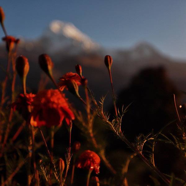 不知...海拔7219米的安娜普纳南峰晨曦不知道什么花,日出的阳光撒上去很漂亮。我们的向导和他来玩的朋友