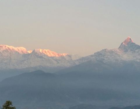 主峰安娜普尔纳峰和著名的鱼尾峰共同组成了这么伟大巍峨的雪山峰群主峰安娜普尔纳峰和著名的鱼尾峰共同组成了这么伟大巍峨的雪山峰群。白雪皑皑的峰群绵延数十公里,非常的壮美。天气好的话在博卡拉市区就能看到这里。
