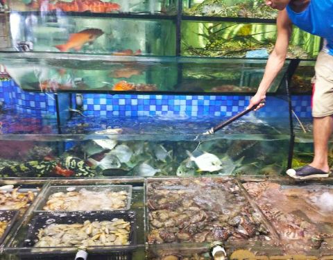 想要品尝海鲜,那么就要到西贡海鲜街了。里面有很多家大排档,每家店都坐满了客人想要品尝海鲜,那么就要到西贡海鲜街了。里面有很多家大排档,每家店都坐满了客人。我们也带着在小渔船上购买的海鲜,在此大吃了一顿。
