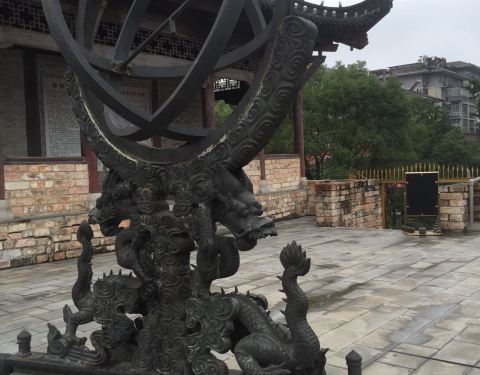 ...走到鼓楼的二层,是个展览厅,室外摆放着许多古时精密的天文观测仪器,有地动仪、日晷、黄道经纬仪等鼓楼金框牌匾高高悬挂着,黑底金字,两旁的建筑在时间的冲刷下,已经略显斑驳。顺着台阶走到鼓楼的二层,是个展览厅,室外摆放着许多古时精密的天文观测仪器,有地动仪、日晷、黄道经纬仪等。