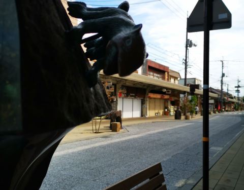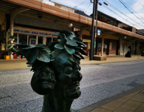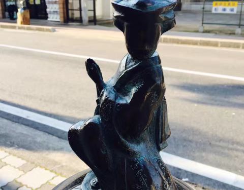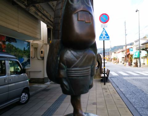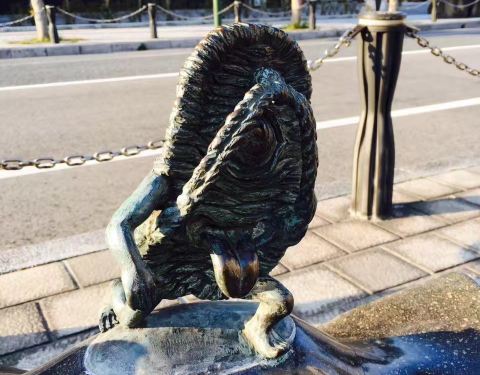 从境港车站出来就能感受到满满的妖怪气息,各种滑稽的妖怪无处不在,车站外偶遇鬼太郎,鬼鬼祟祟的躲在柱子后面看着我们,你以为这样就能吓到我嘛!水木茂大道上每隔几米就有一个铜质妖怪雕塑,街道两边的店铺门口分别摆着印章,想要集齐印章的宝宝们,别光顾着妖怪啦!