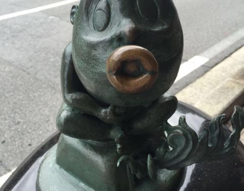境港真的是一个很小很小的城市,但是因为这里出了一位叫水木茂漫画家,使整个人城市变得活泛起来。随处可见水木茂的作品鬼太郎中的各种妖精的塑像,有大有小,在城市的各个角落,一个转角,它会忽然蹦到你的眼前。