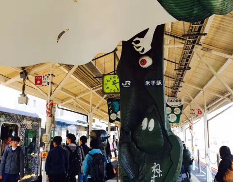 日本名作动漫“鬼太郎”,作家“水木茂”家乡,境港市“水木茂大道”,一下“鬼太郎列车”,就能尋到妖怪世界,妖怪们!