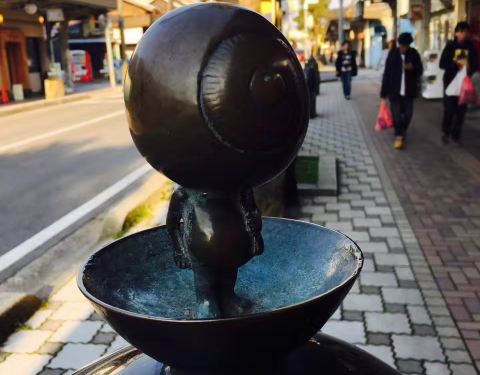 水木茂大道上每隔几米就有一个铜质妖怪雕塑,街道两边的店铺门口分别摆着印章,想要集齐印章的宝宝们...从境港车站出来就能感受到满满的妖怪气息,各种滑稽的妖怪无处不在,车站外偶遇鬼太郎,鬼鬼祟祟的躲在柱子后面看着我们,你以为这样就能吓到我嘛!水木茂大道上每隔几米就有一个铜质妖怪雕塑,街道两边的店铺门...从境港车站出来就能感受到满满的妖怪气息,各种滑稽的妖怪无处不在,车站外偶遇鬼太郎,鬼鬼祟祟的躲在柱子后面看着我们,你以为这样就能吓到我嘛!水木茂大道上每隔几米就有一个铜质妖怪雕塑,街道两边的店铺门口分别摆着印章,想要集齐印章的宝宝们,别光顾着妖怪啦! 展开