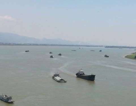盛夏徒步羚羊峡――虽然蓝天白云、烈日炎炎,但幸运的是下午多云经常遮着太阳,而且也有部分路段树木茂盛,加之时有江风,减缓了酷热程度,但依然汗流不止。