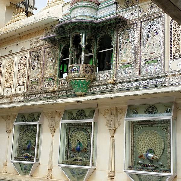 到了乌代布尔还是要去城市宫殿的,我们从酒店步行十分钟就到了。去的早游客不多,一间一间参观过去,就是历史博物馆,尤其是大厅墙面的水晶孔雀,不得不看,不得不拍。