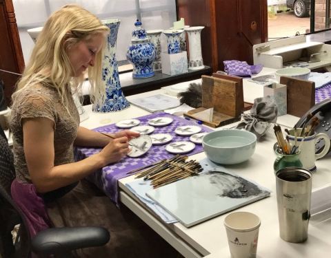 ...,很多精致的蓝瓷,还有烤瓷车间,有体验项目可以亲手做一个瓷盘,很有特色也很有名气的荷兰蓝陶基地