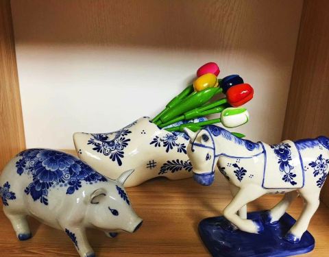 蓝瓷或者叫蓝陶是荷兰的国宝,是仿照中国的瓷器制作的。在蓝陶工厂可以看到蓝陶制作的全过程,有中文导览。里面有画师在现场绘制蓝陶,还有许多蓝陶的珍品。后面的商店里蓝陶制品的价格很贵,随便一小件都是几百欧。也有一些所谓的打折货品,几十欧的,粗制滥造,不建议购买。