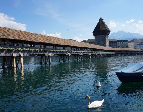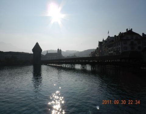 欧洲最古老的木制廊桥,琉森的标志性建筑,可欣赏上百幅宗教彩绘。