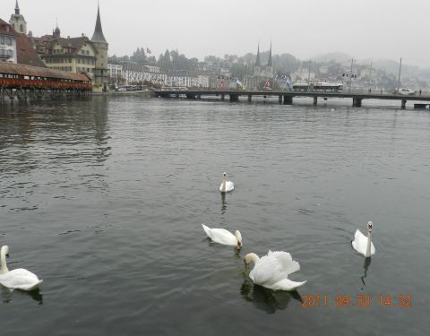在河边漫步,欣赏两岸的小城风光,真是令人陶醉。河面上架有著名的卡佩尔廊桥等数座桥梁卡贝尔桥是琉森的重要标志,始建于1333年,是卢塞恩的水上城墙,此桥是 欧洲 最古老的木制廊桥。桥长约为200米,但不是一座直桥,有两个小的转弯。廊桥顶部每隔几米就有一幅彩画,共有110幅,开始绘制于17世纪,...卡贝尔桥是琉森的重要标志,始建于1333年,是卢塞恩的水上城墙,此桥是 欧洲 最古老的木制廊桥。桥长约为200米,但不是一座直桥,有两个小的转弯。廊桥顶部每隔几米就有一幅彩画,共有110幅,开始绘制于17世纪,每幅画的内容多为卢塞恩的历史风貌和琉森历史英雄人物的故事。八角型水塔位于桥身近中央的地方,在经历火灾时只有水塔未被破坏。该水塔曾经是监视外敌入侵的哨所,也用来做战利品的保管室和审讯室。罗伊斯河的水十分清澈,常能看到天鹅、野鸭在河面上惬意地游行。在河边漫步,欣赏两岸的小城风光,真是令人陶醉。 它们在阳光下畅游嬉戏,它们与人都如此友好,可以喂食,它们便会围着你不离开。美丽的罗伊斯河从琉森城中穿过,将其分为两部分,一边是古老淳朴的老城,一边是秀丽端庄的新城。河面上架有著名的卡佩尔廊桥等数座桥梁。美丽的卢塞恩湖是瑞士的第四大湖 ,也是完全位于瑞士境内的第一大湖。卢塞恩湖湖岸线蜿蜒曲折,生出许多分叉,将卢塞恩城和周边的山峰连接起来。罗伊斯河从Flüelen流入湖中,再从卢塞恩流出。道路中央远处的教堂就是霍夫教堂,已有一千二百年历史的哥特教堂,卢塞恩当地民众的信仰中心。这里既具有21世纪的现代化,更具有中世纪所特有的美、和谐及生命力。徜徉在卢塞恩老城中,历史建筑和各种各样的塑像、喷泉擦身而过,共同谱写一支穿越时空的恋曲。 展开
