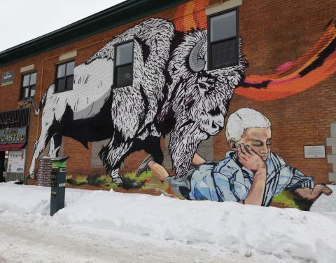 返途沿着河边走,终于走到一处拐角处,没有围栅,没有阻拦,可以尽情贪婪的欣赏圣劳伦斯河的美景。脚踩堤坝,没有涛声,只有静谧。眼前浮冰缓缓流动,有些年代感的小船被冰雪从河面上托起,仿佛不是被困在港口内...