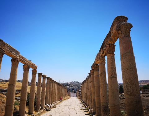 被称为罗马以外的罗马城—杰拉什,是约旦境内保存得最完好的古罗马城市之一,石板街道,柱廊林立,神殿屹立,还有壮观的剧场,开阔的广场,这一切曾经消失了一千多年的场景,如今还栩栩如生地展现在世人的面前。