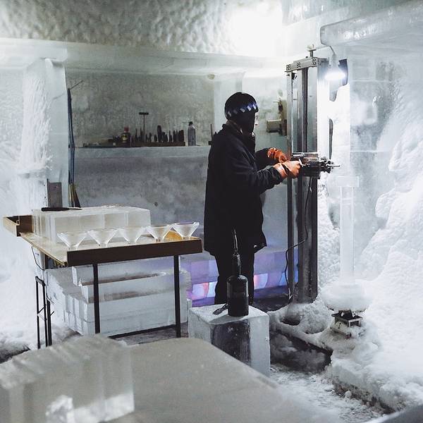 我们到达珍娜温泉的时候 正好是冰雕博物馆这一时段开放的时间 每天:上午11:00 下午1.3.5.7(这5个时段) 提前15分钟至度假村前台预定即可 15美元/人。还飘着雪忙碌着制作冰杯的老爷爷 以便供应给喝酒的客人。冰...