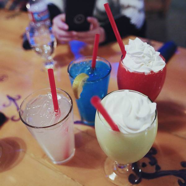 台湾小伙还吧他刚才喝过的鸡尾酒 冰雕酒杯带出来了 太可爱了 分分钟要化 只能把它放在室外 留在这里了。我们分别点了不同口味的果酒。