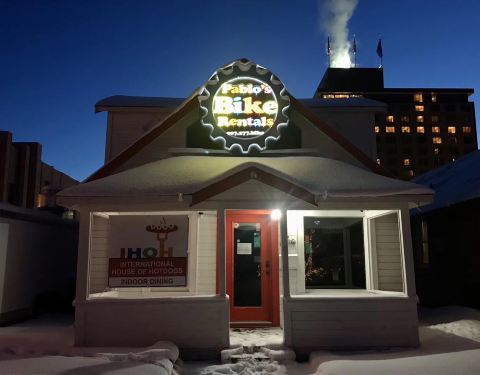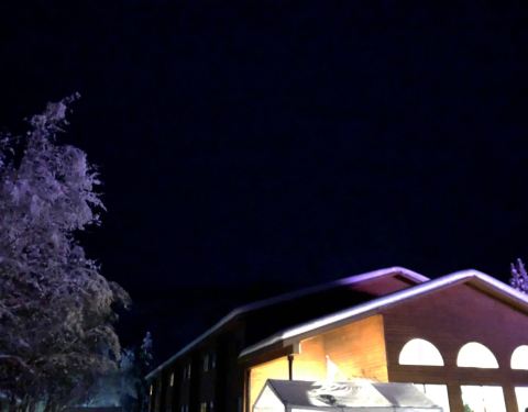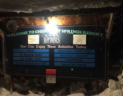 我们到达珍娜温泉的时候 正好是冰雕博物馆这一时段开放的时间 每天:上午11:00 下午1.3.5.7(这5个时段) 提前15分钟至度假村前台预定即可 15美元/人。还飘着雪忙碌着制作冰杯的老爷爷 以便供应给喝酒的客人。冰雕馆很小 比起大中华的哈尔滨冰雕 这里就是小巫见大巫 但这个冰酒吧 还是挺有特色的持护照 可购买 鸡尾酒15刀/杯 喝完冰杯可以带走噢。随后我们泡温泉 其实温泉很小 一圈岩石环绕 并不是我现象的样子😂 但是在飘着雪 零下20度的冬日里 还是很舒服的。 门票:15刀/人 今晚下着雪 幻想着边泡温泉边看极光的想法是破灭了 😂😂😂。这是做Spa的按摩房。这是珍娜温泉度假村里唯一的餐厅 小小的门 进去别有洞天 一入门便是摆满纪念品的小商店 你也可以选择在这里邮寄一些明信片。泡好温泉 已过饭点的时间 我们依然还是需要小排一会队 台湾小伙还吧他刚才喝过的鸡尾酒 冰雕酒杯带出来了 太可爱了 分分钟要化 只能把它放在室外 留在这里了。我们分别点了不同口味的果酒。 好好享受这最后一顿 大家有缘聚在一起的晚餐 随后我们乘车2小时左右回到费尔班克斯市区。