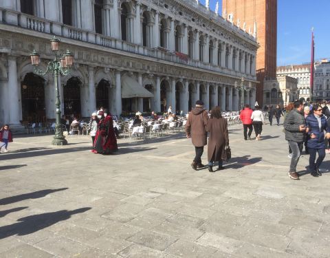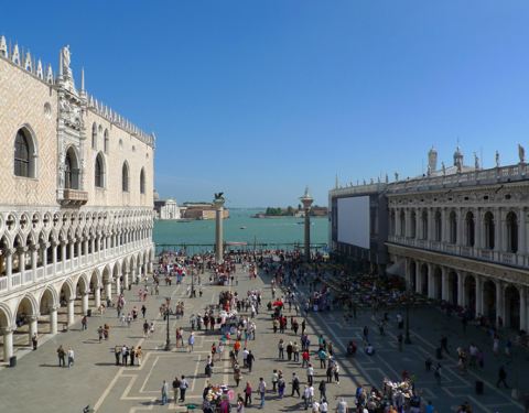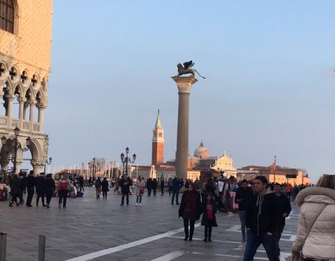 反正就是圣马可广场的一部分,也可以说是进入大广场的必经之地。虽然没有被历史建筑物所包围,但小广场对着码头和市集,游客熙来攘往的地方,可以看到大运河的风景。