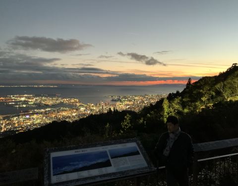 六甲山的夜景在整个日本都是十分有名的 而山上虽然寒风习习 但是每到夕阳就可以看到很多情侣在这里眺望着神户的海岸线 和各式各样人工岛的造型 整个绵延的山在某种程度也让神户老城区看得很狭小而且有种山城的感觉