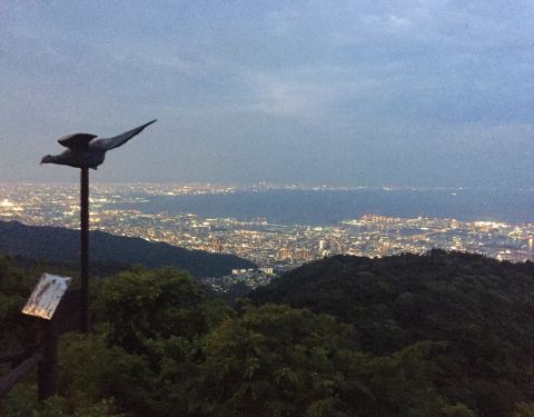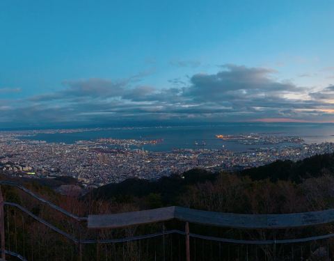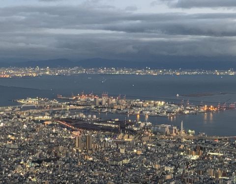 六甲山距离神户市区较远,山区被指定为濑户内海国立公园,山上的展望台海拔高达737.5米,在摩耶山掬星台东北方向,从这里能将神户港夜晚的全景尽收眼底,被称为“日本三大夜景地”之一。在天气好的时候,甚至连大阪平原和远方和歌山的海岸线也可以看到。
