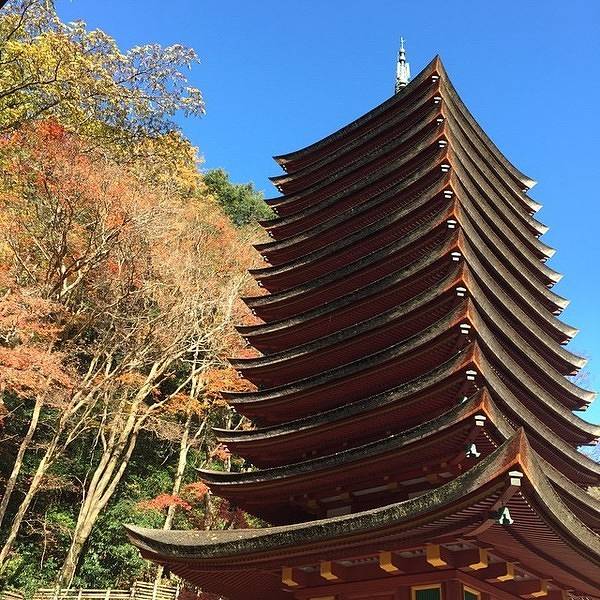 谈山神社是日本赏枫名所,这里有3000多株的枫树,一到金秋时节,放眼望去,神社的大殿在枫红的映照下,煞是好看。其实,谈山神社不仅仅有着绝美秋景,神社本身也是日本非常著名的文化古建筑。特别是神社内的十三重塔,这是世界上唯一一座木质结构的十三层塔,建于678年,目前看到的是1532年修建后的样子。