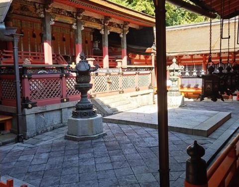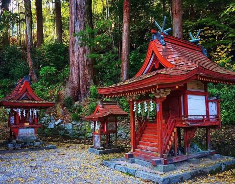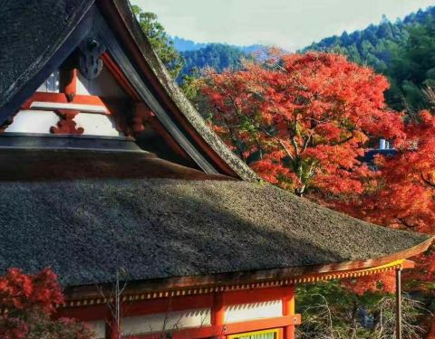 谈山神社以樱花红叶著名,这里种了大片枫树,秋天来临之际,可以看到红叶与社殿的朱红色一起燃烧竞艳的情景