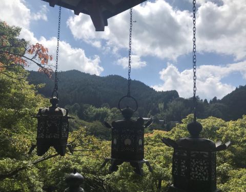 奔上的是一辆只有四五节车厢的古老的小电车。电车29分钟,巴士往山里转悠了20分钟左右,再行走个几分钟,便来到了谈山神社。 漫步谈山神社,这里的一切宁静祥和!