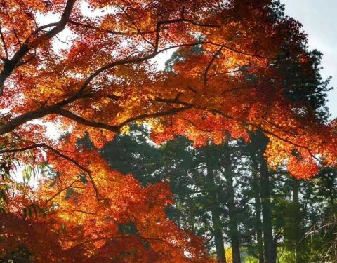 谈山神社以樱花红叶著名,这里种了大片枫树,秋天来临之际,可以看到红叶与社殿的朱红色一起燃烧竞艳的情景。