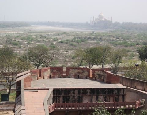 是阿格拉堡里面规模最宏大的宫殿,进入阿玛尔·辛格门,沿斜坡而上,右手第一个建筑便是。皇宫前面是很漂亮的一片绿地,建筑采用了印度城堡中比较罕有的对称设计,两边的清真塔尤为突出。在这里可以眺望到河畔远...