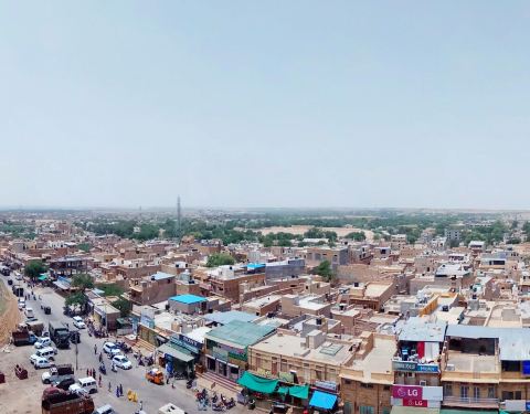 但是贾沙梅尔堡不收门票,里面还生活着很多居民。有几个居高临下的观景点可以俯瞰城市跟焦特布尔的城堡很像,也是建在土丘上,没有那么雄壮。但是贾沙梅尔堡不收门票,里面还生活着很多居民。有几个居高临下的观景点可以俯瞰城市。