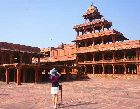 法地布尔•西格里古城很大,有两部分组成,一部分是就是胜利之门那里,另一部分就是侍女楼这里,占地面积很大, 应该说是皇帝的后花园。