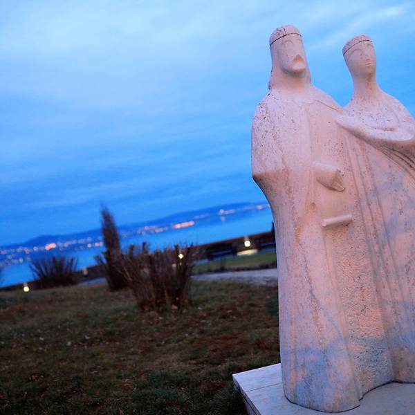 分不清是清晨还是黄昏这座牵手雕塑,当然来源一个美丽的爱情故事