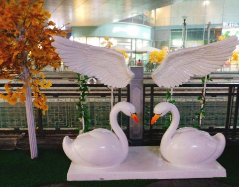 片片银杏叶子 虽然是假的 但是晚上亮灯了还是很美貌的 这个属于吾悦广场后门 前门是个艾菲尔塔 总体来说这里吃喝玩乐都有了 可以在这里泡一天了