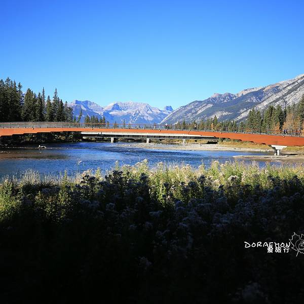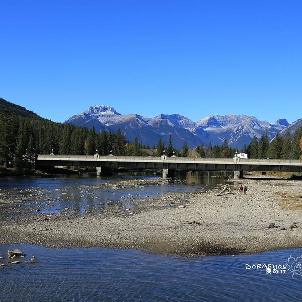 从惊奇角沿着弓河旁步道走向班夫大街 展开