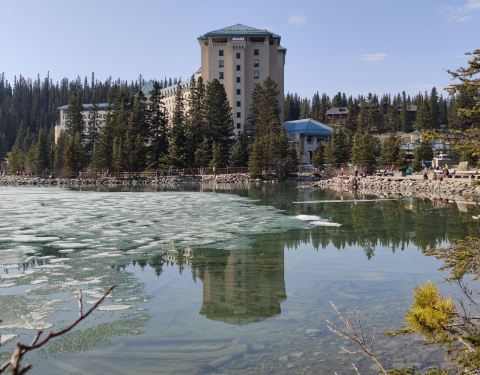 ...的时间,根本欣赏不到路易斯湖的晚霞和朝阳的美景,更享受不到坐在酒店临湖的窗边,喝一杯咖啡的愉悦五月底的艾伯塔省路易斯湖正是湖冰将化未化时节。湖边已露出碧绿清澈的面容,湖中央冰雪远未融化。早晚散步在湖边,天气已不觉寒冷,这是住在湖边酒店里才有的便利。非住游人到此只有一个多小时在路易斯湖观光的...五月底的艾伯塔省路易斯湖正是湖冰将化未化时节。湖边已露出碧绿清澈的面容,湖中央冰雪远未融化。早晚散步在湖边,天气已不觉寒冷,这是住在湖边酒店里才有的便利。非住游人到此只有一个多小时在路易斯湖观光的时间,根本欣赏不到路易斯湖的晚霞和朝阳的美景,更享受不到坐在酒店临湖的窗边,喝一杯咖啡的愉悦。也许晚两周到此湖冰会完全融化,但我更喜欢这冰水相交的湖景和倒影,还有夕阳西下的山峡,清晨太阳升起金色的雪峰。 展开