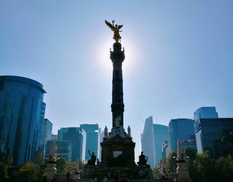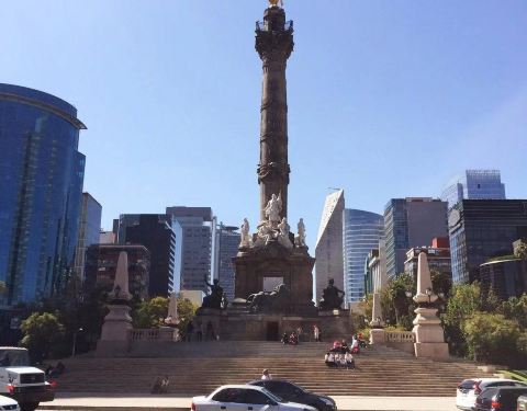 独立纪念柱坐落于墨西哥城改革大道中心广场上,沿着白色大理石的阶梯拾级而上,抬头仰望直指苍穹的圆柱形纪念碑,36米的顶端上,站立着沐浴在金色光辉中凌空翱翔的独立天使包金青铜铸像,高6.7米,重7吨。是为纪念墨西哥独立战争100周年而建的独立纪念碑,于1902年1月3日举行奠基仪式,落成典礼于1910年9月16日举行,由墨西哥建筑师和法国雕刻家合作完成的,它是墨西哥人民独立精神的象征,也是墨西哥人民反对外来侵略者、争取民族独立的胜利标志。 附近都是酒店和餐厅、MALL,很多游客在下面合影,还有结婚的人们总要来这里照相,所以旁边经常会有很多豪车,加长悍马等。