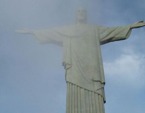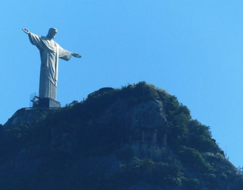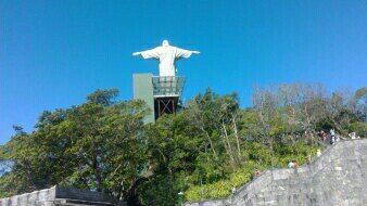里约地标,做大巴上山,可以做小火车,或徒步上山,上面就观景台和这个雕像