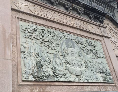这是一座非常年轻的寺院,只有一座五层的舍利塔年代久远,寺庙墙壁上的浮雕、矗立在各处的佛像都是现代雕刻技术的体现,精致、恢宏,加上雨后蒙蒙的雾气,在山色中也别有一番风骨。