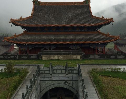 ...个寺庙,离五台山很近,去的时候好像赶上了雾霾,和西藏的天空真是没法比,竹林寺远看很瘦,很有特点