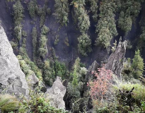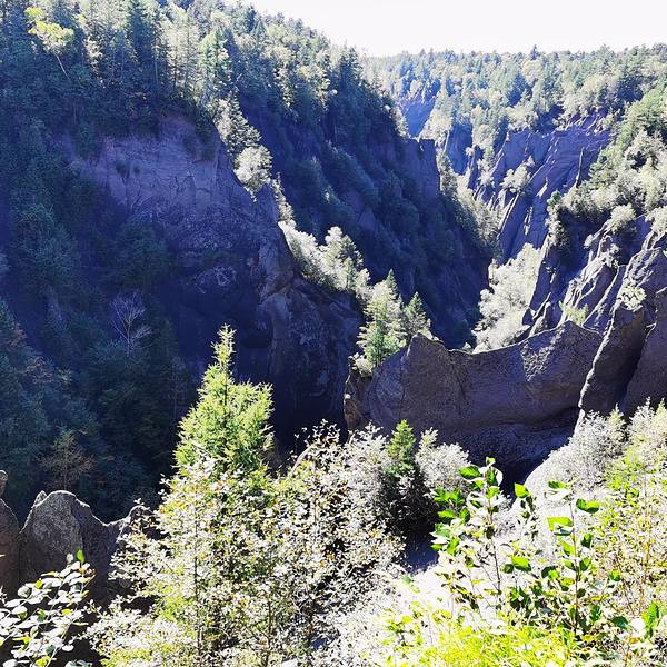 大峡谷全长1.8公里,不走回头路。锦江大峡谷是由于长白山火山喷发时,地震所引起的山体分裂这里是国内规模最大的火山岩区峡谷地貌,峡谷幽深,望不到底,听见水声轰隆,偶见溪流奔涌犀牛望月锦绣屏风双峰骆驼千姿百态,步移景异松树和桦树长在了一起 展开