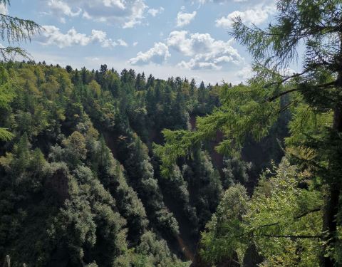 锦江大峡谷是长白山中自然形成的一条山谷,山谷内密布着大面积的原始森林,在林中行走,树枝遮挡下是...锦江大峡谷是长白山中自然形成的一条山谷,山谷内密布着大面积的原始森林,在林中行走,树枝遮挡下是不见天日,大家可以过来感受一下大氧吧的感觉。