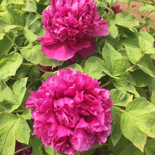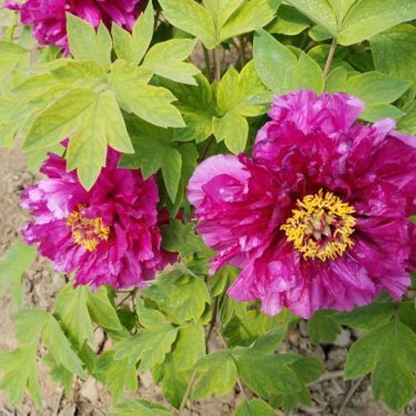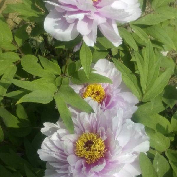 二、同株异花。一株汉牡丹同时可开出不同形状的花朵。