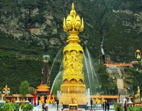 消灾寺镶嵌绝壁之上,历经千年沧桑,赐福广场音乐喷泉升降旋转赐福观音,还有江南水乡仿古一条街值得逛逛