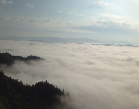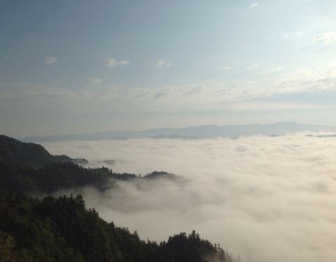 飞鸽林场公路可通到贵州和重庆交界的界碑处,现不门票,适合自驾游,有门楼,观云海台,千年白果树,水上公路等景点。大坡分路上林场的路较窄,坡大弯急,注意观察避让。开水上公路是一大特色。