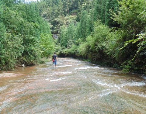 去飞鸽森林公园的路上会看见大量的鹅卵石,这是由于底层运动而形成的,说明曾经这里是海洋,难怪这么凉快!走到山顶就来到了云海,所谓有雾者海,如果天气不错在这里看日出也非常不错!再往下走就到了水上公路,到了水上公路都会情不自禁的脱掉鞋子去戏水,水深的地方还可以去洗澡,这里与四面山风景区连为一体形成了西南第一氧吧,到了夏天来这里避暑的就更多,我觉得简直就是避暑天堂!