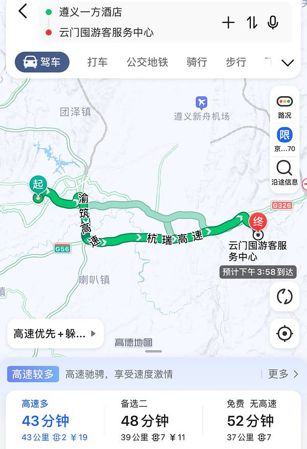 遵义出发45分钟就到