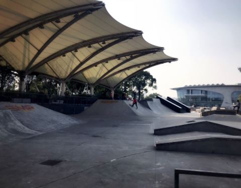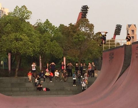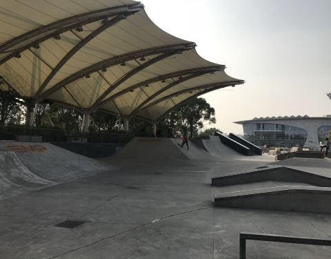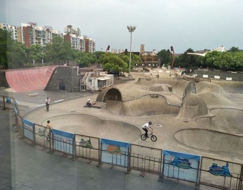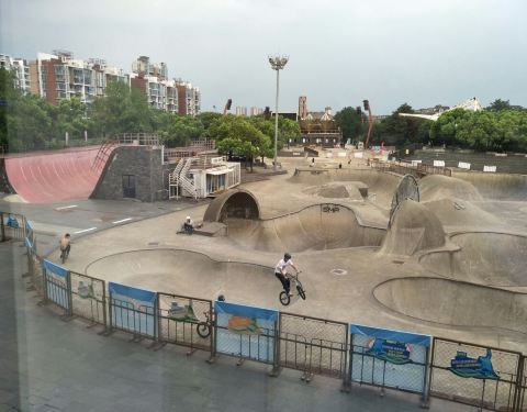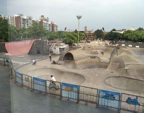 据说这里建成的时候是世界上最大的极限滑板运动户外中心,可现在这里的一部分滑板设施已经老化被放弃,剩下的主体部分也看不到人声鼎沸,就连入口都很难找。这里大部分还是年轻人,固定成群的玩。