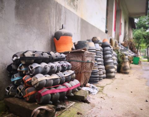 到底江山旅行的第一站,来到了这个和睦彩陶村。 以前的彩陶村,也许家家户户都是做陶器的,而如今的村落里,安静的只能听到鸡鸣和狗叫。 村子里有一户人家开着大门,迎接着我们这些远来的客人,提供给我们自己尝试做陶器的机会,做好了,还可以让师傅帮忙烧制了,过些日子快递给客人。
