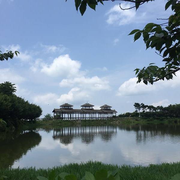 山顶上的小湖配长亭,再用白云做背景,美爆了。