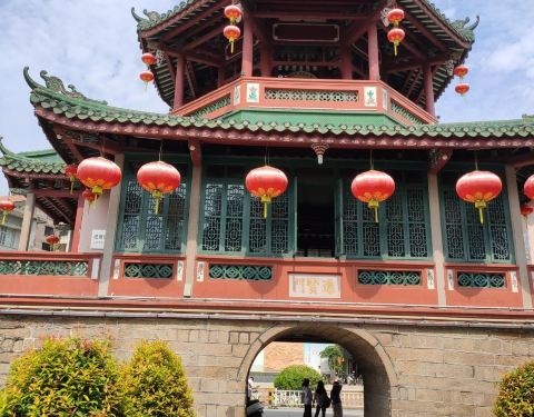 而且造型又非常独特,表面上看是门,实际是楼,离远看又像是亭。进贤门底层为石筑城门,不过三五米高揭阳学宫东面数百米处便是进贤门城楼,游完揭阳学宫,可以顺便一起逛了,两地只相隔一条几百米的步行行走。这座城门的命名也与揭阳学宫有紧密的联系。原因这个城门就在学宫附近,取增进贤士之意,故名“进贤门”...揭阳学宫东面数百米处便是进贤门城楼,游完揭阳学宫,可以顺便一起逛了,两地只相隔一条几百米的步行行走。这座城门的命名也与揭阳学宫有紧密的联系。原因这个城门就在学宫附近,取增进贤士之意,故名“进贤门”。·明、清时期进贤门以“谯楼晓角”成为揭阳古八景之一。如今,在这商业繁荣、车水马龙的街道上,早已没“晓角”,但这座谯楼依旧见证着揭阳的沧桑变化。进贤门和其它古城楼相比,不算宏伟,反倒和它的名字一样秀气。而且造型又非常独特,表面上看是门,实际是楼,离远看又像是亭。因此,老揭阳人都喜欢叫它“红亭”。进贤门底层为石筑城门,不过三五米高。上层则是纯木结构的三进五间,四周为花窗活牖,南北各有门亭,顶层为八角亭阁,屋顶为墨绿色琉璃瓦。是古城门建筑中的佼佼者。有很高的艺术欣赏价值。 展开