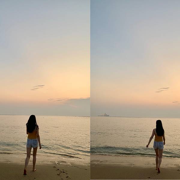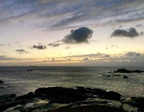 下午起来的时间去了塘屿岛的另一个景点,相对于金沙滩海滩而言去的人会比较多,风景我并没有觉得比金沙滩美。 去的决定下的比较偶然也没准备好衣服,就穿了个吊带就去了。要走到码头那边坐三轮车过去,一个人5块钱,大概10几分钟就到了海坛天神。 塘屿岛上比较失望的应该是日出和日落吧,可能也跟天气有关,我们去 的那几天的日落都不算特别好看。去的时候就只剩下这一个“咸蛋黄”一样的日落日落下去了之后相比白天在金沙湾看到的海而言,海坛天神的日落着实让人失望,也拍了一些照片,给大家欣赏一下吧!最近长胖了一些,拍照都有些显胖,只能拍一些背影啦,在海边走了走就回到了住的公寓了。 晚上我拉着张先生又去了一趟金沙湾,我想听听海的声音,但录出来是嘈杂的。晚上的海不管是看起来还是听起来都比较可怕,跟白天明朗的样子完全不像,海边也没有路灯,在海边呆了一会就回去先休息了。